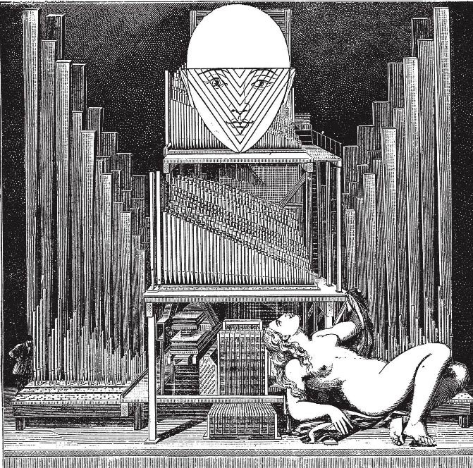 París, el epicentro del movimiento, vibraba al ritmo de sus experimentaciones, especialmente tras la publicación de sus obras cruciales: “La Femme 100 Têtes” (1929), “Rêve d’une petite fille qui voulut entrer au Carmel” (1930), y “Une Semaine de bonté ou les Sept éléments capitaux” (1934). Estos libros no solo consolidaron a Max Ernst como un pilar del surrealismo sino que también redefinieron el uso del collage, mezclando ilustraciones de novelas por entregas y catálogos técnicos para crear nuevas realidades, desafiando nuestra percepción de lo cotidiano y lo lógico.